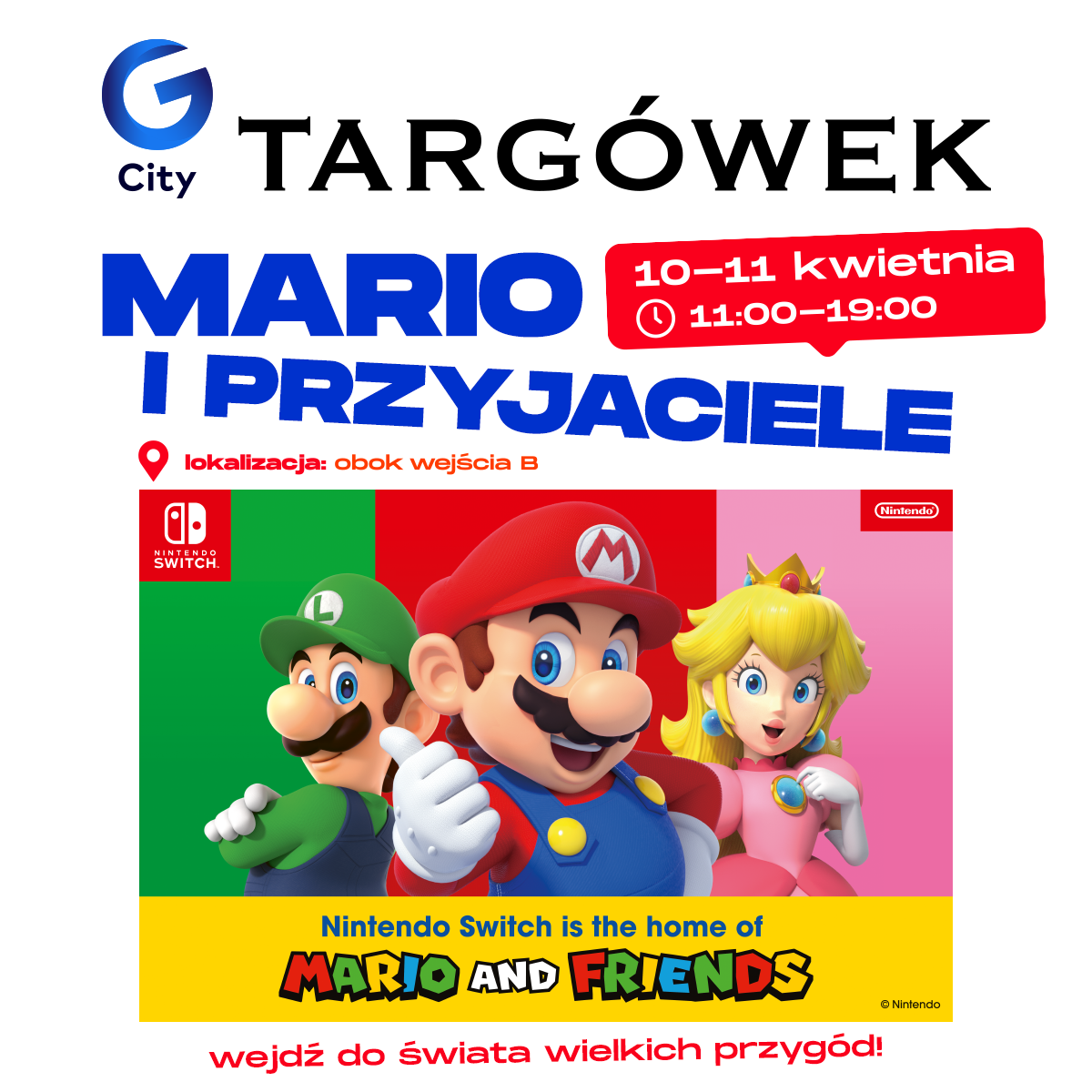 Z kolei G City Targówek zaprasza wszystkich fanów kultowej serii na wyjątkowe wydarzenie pełne gamingowych atrakcji. 10 i 11 kwietnia w godzinach 11:00-19:00 G City Targówek odwiedzą Mario i przyjaciele. Bohaterowie kultowej gry zabiorą wszystkich fanów w szaloną podróż po swojej krainie.