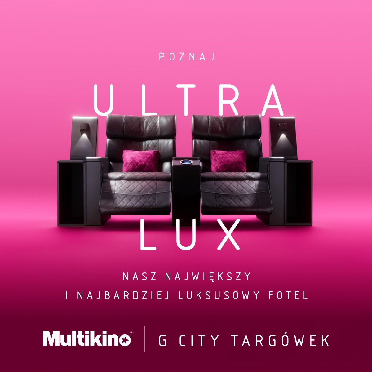 Każda z dwunastu sal Multikina G City Targówek została wyposażona w fotele VIP, LUX oraz Ultra LUX – nową kategorię kinowego komfortu, zaprojektowaną z myślą o najbardziej wymagających widzach. Fotele Ultra LUX to całkowicie nowy standard oglądania filmów. Mają one wyjątkowo szeroki podłokietnik i osobisty stolik. To najbardziej przestronne fotele, jakie kiedykolwiek oferowano na polskim rynku kinowym. Do dyspozycji jest również dedykowana do każdego miejsca przestrzeń, w której widzowie mogą umieścić rzeczy osobiste oraz specjalne chłodzone miejsce na napój, by pozostał zimny przez cały seans. W fotelach Ultra LUX filmowe hity w Multikinie w CH Targówek można oglądać w pozycji półleżącej. To widz decyduje, w jaki sposób ogląda film, samodzielnie sterując fotelem. Jego oparcie i podnóżek można regulować niezależnie – by znaleźć dokładnie taką pozycję, jaka najbardziej odpowiada uczestnikom seansu.
