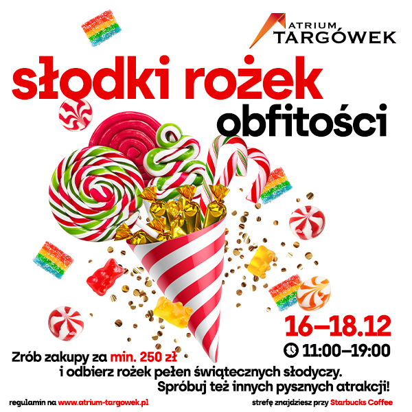 Wszystkich miłośników słodyczy i pysznej zabawy zachęcamy do odwiedzenia w dniach 16- 18 grudnia, w godzinach 11:00-19:00, słodkiej krainy-Candylandii.