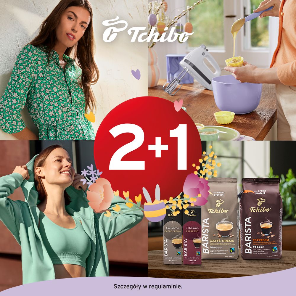 Sprawdź super ofertę w Tchibo😍Trwa 2+1 na artykuły z kolekcji, kawy, kapsułki oraz na akcesoria kawowe❤Szczegóły w regulaminie.