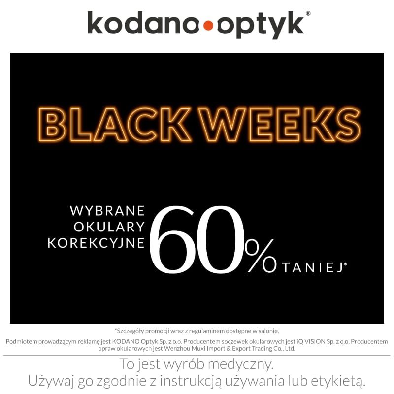 Skorzystaj z wyjątkowych rabatów z okazji Black Weeks! Teraz wybrane, kompletne okulary korekcyjne kupisz aż 60% taniej! *